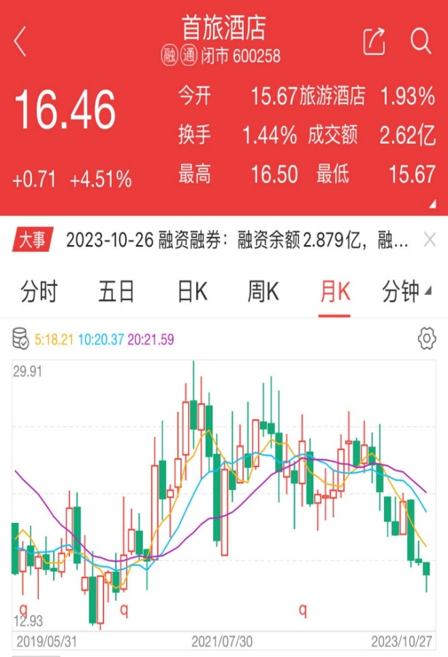 七天长假,很多酒店多少有了一点“井喷”的味道。然而节后第一个交易日,酒店类上市公司的股价却出现暴跌,当日平均跌幅超过6%,为各板块之最。这种跌跌不休的态势一直持续到2023年底,股价已经处于疫情三年中都没有触及的低点。
