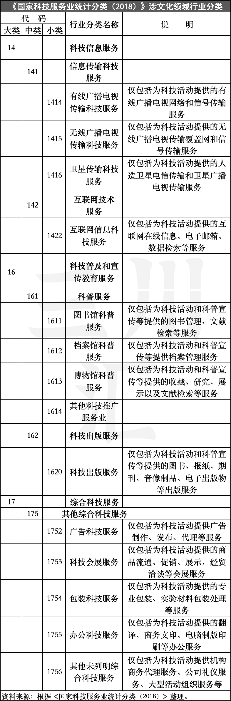 为适应行业发展和统计工作的需要,2017年6月,新的《国民经济行业分类》(GB/T 4754-2017)正式发布,鉴于《国家科技服务业统计分类(2015)》已无法满足当前行业发展和统计需求,国家统计局于2018年12月根据新的国民经济行业分类标准进行修订,完成了2018版《国家科技服务业统计分类》,在保持2015版分类原则、方法和框架不变的前提下做出了相应调整。